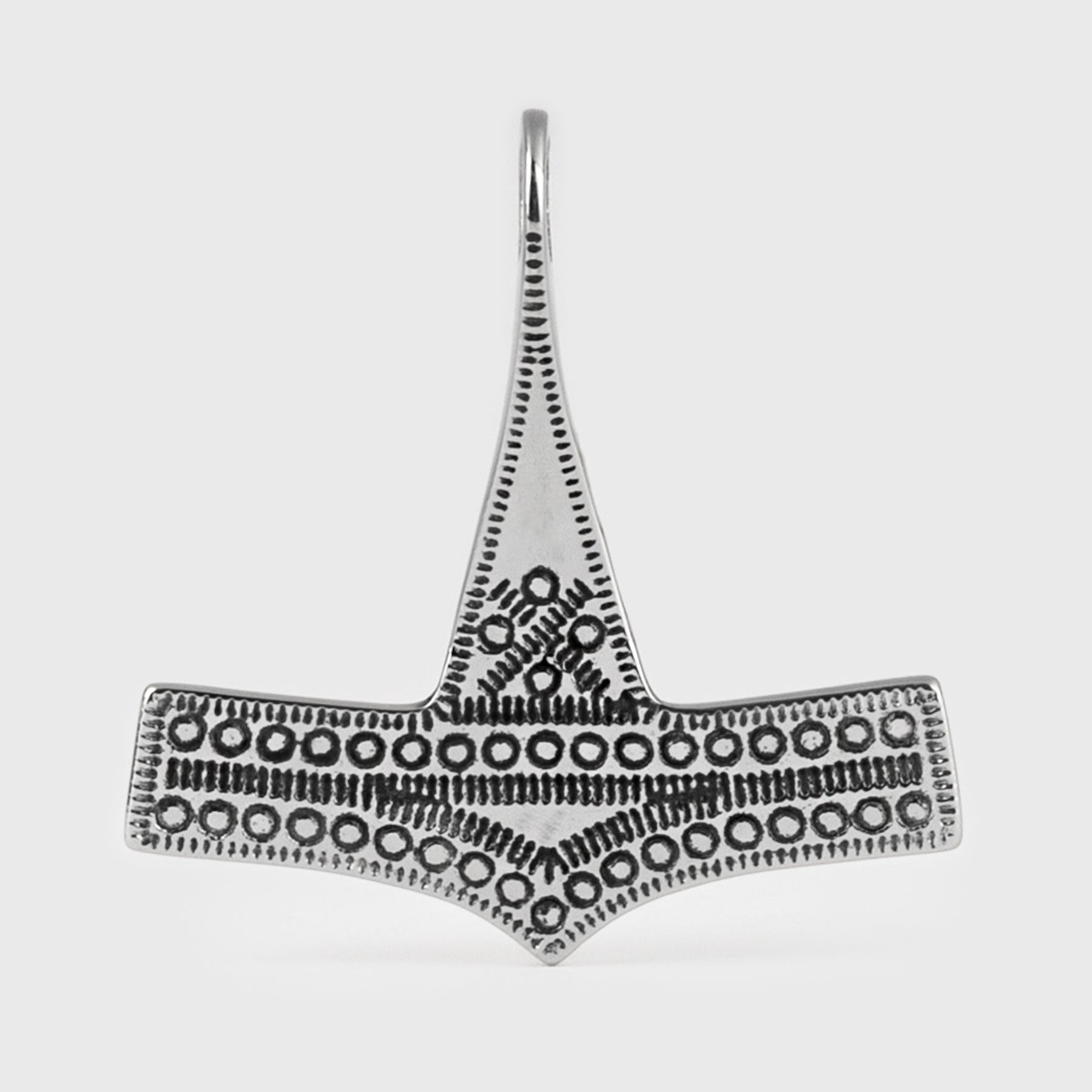 A reproduction in Stainless Steel of the Thor’s Hammer found in Bornholm, Denmark. The backside is smooth.