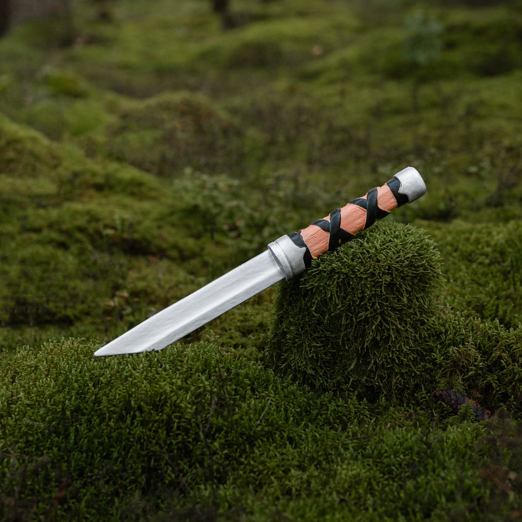 Viking seax in high density polyurethane foam material with a fiberglass core. It is perfect for battle training, LARP or costume play in places where real weapons aren't allowed. Adult use only. Not a toy and not suitable for children under the age of 14.