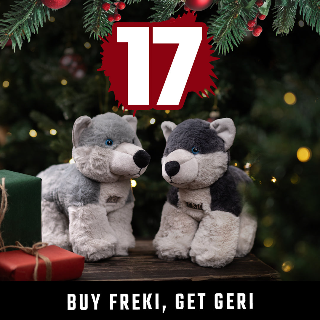 Freki and Geri spend all their time together. They are the loyal wolves of Odin, the Chieftain of the gods. You can now get both wolves in this discounted set.
