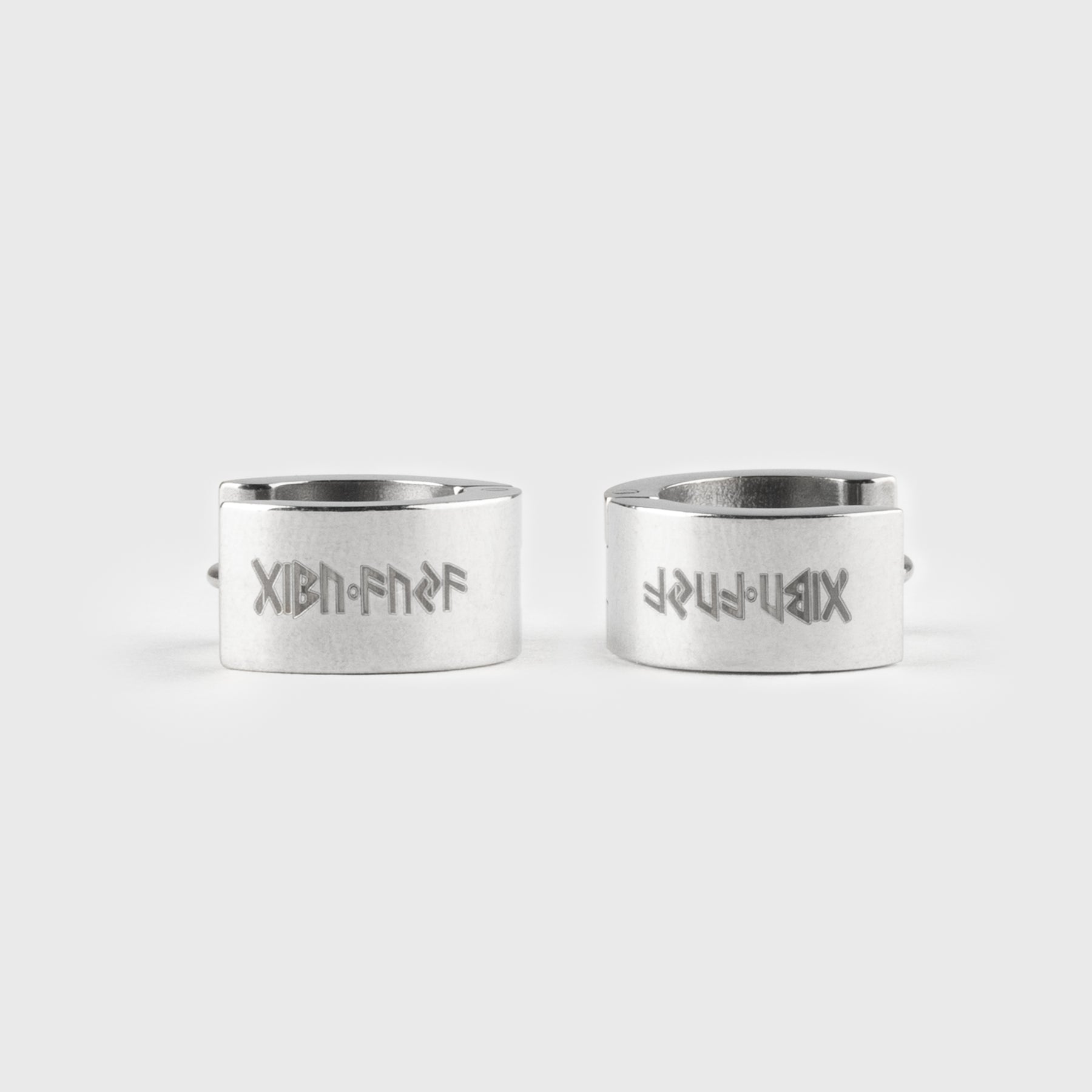 Huggie hoop earring with "Gibu Auja" written with the Elder Futhark runes. It is an old inscription found in archaeological finds from 6th Century Scandinavia that translates to "I Give Luck". Suitable for both men and women. Made from hypoallergenic stainless steel.