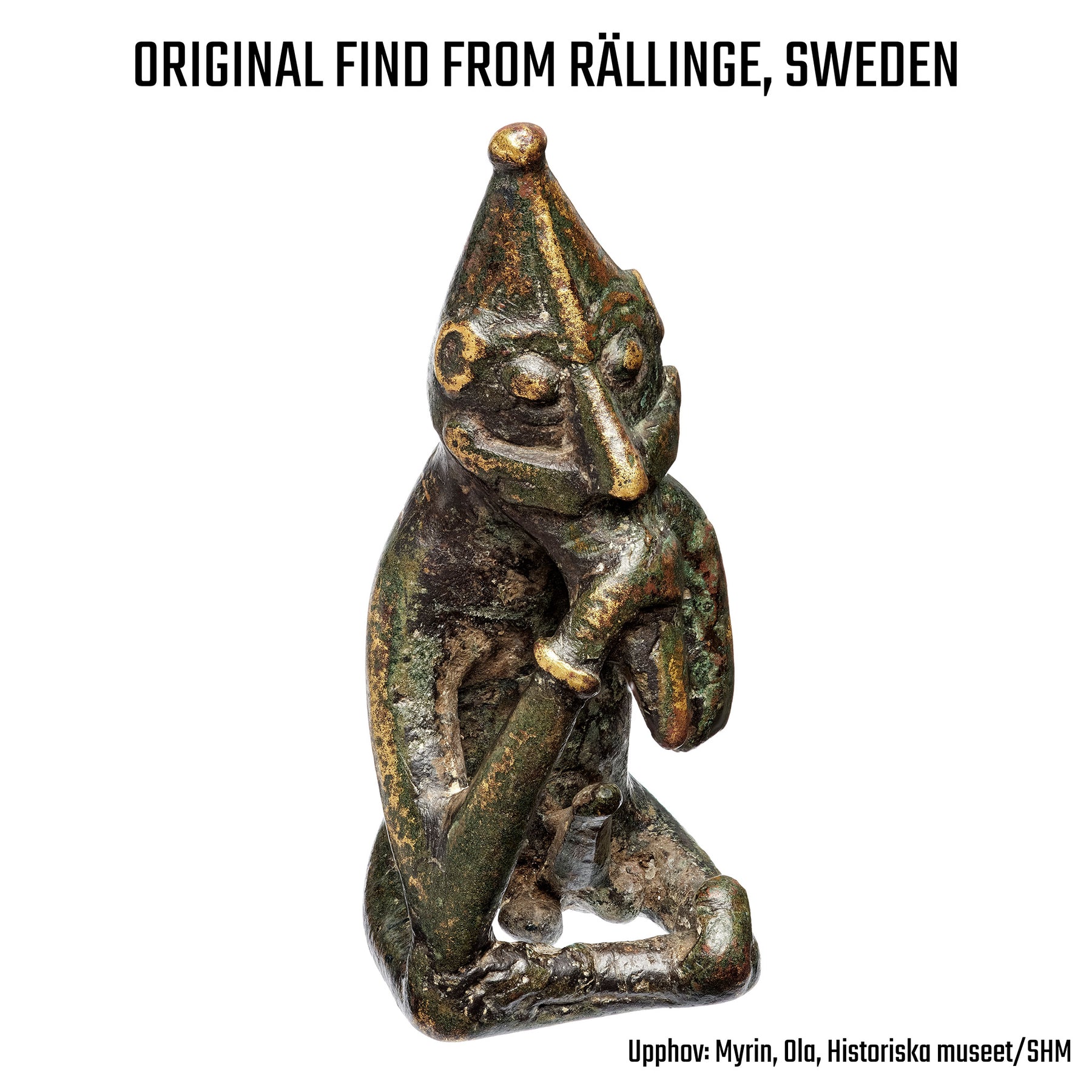 Carefully handmade pendant depicting the Viking god Freyr. It is based on a figurine that was found in Rällinge, Sweden. It should be mentioned that a phallic symbol is visible on the pendant. Freyr was associated with sacral kingship, virility and prosperity, as well as with sunshine and fair weather, and was pictured as a phallic fertility god. It was said that Freyr "bestows peace and pleasure on mortals".