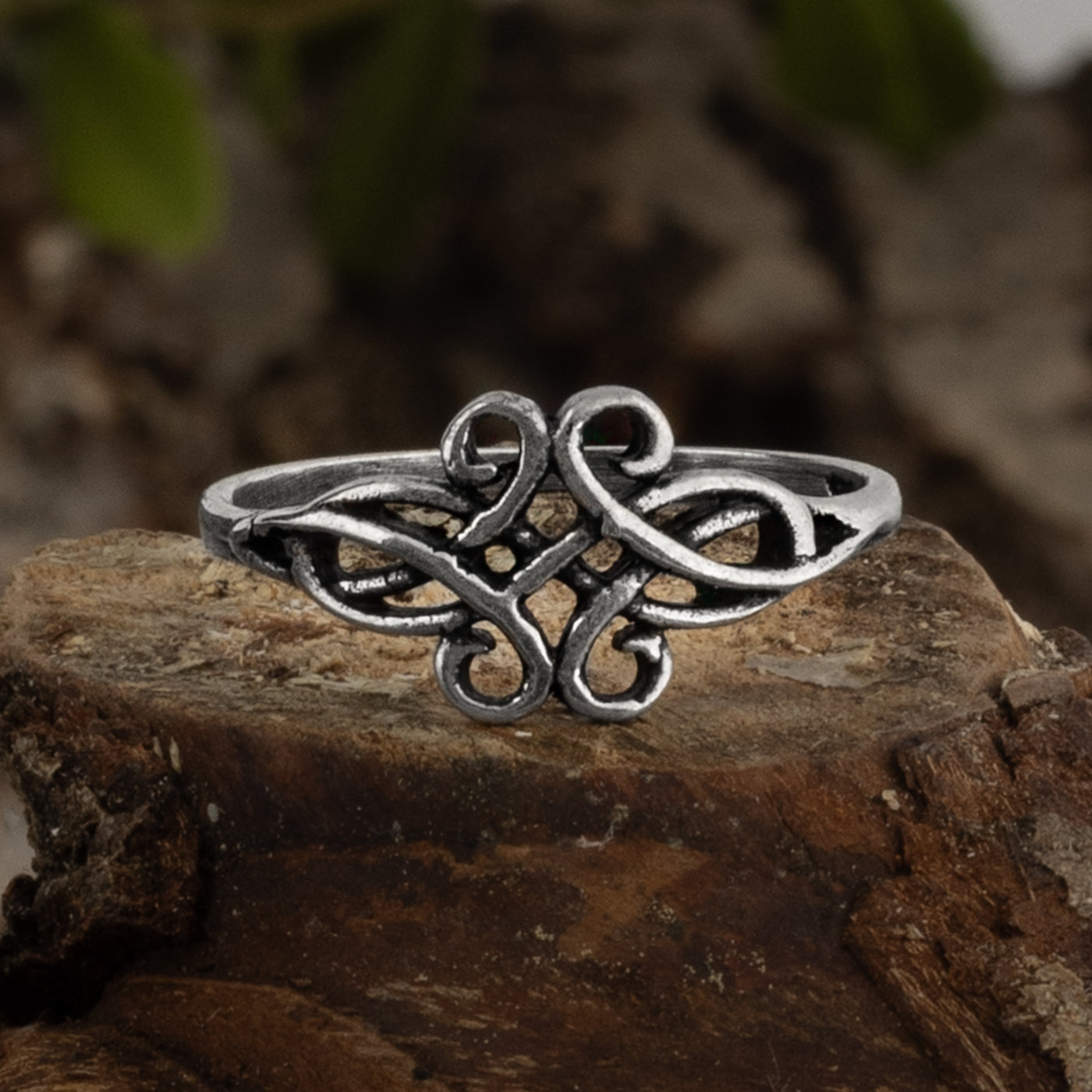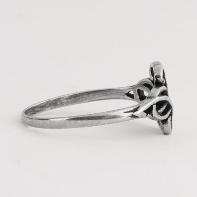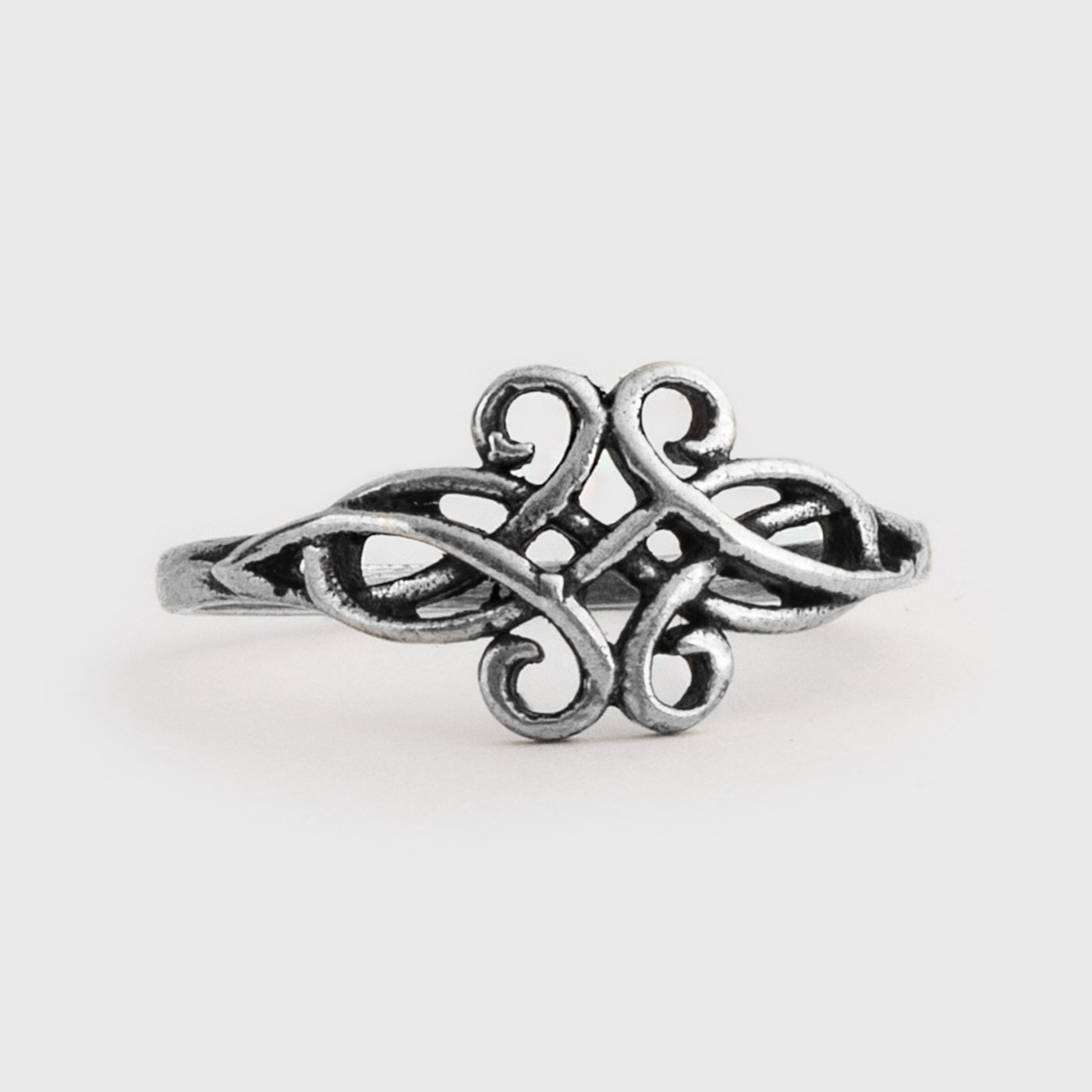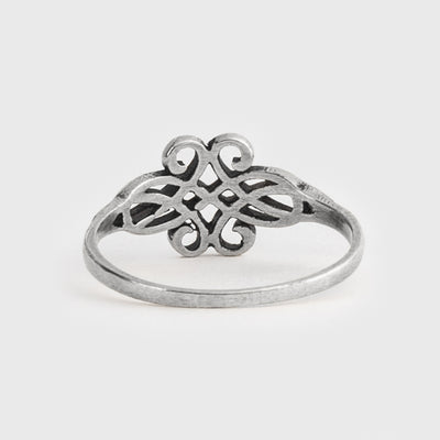 Handmade ring in solid Sterling Silver with swirling knotwork design.