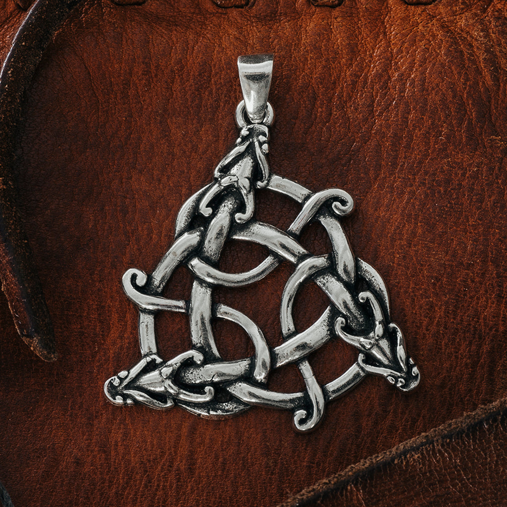 Carefully handmade triquetera pendant consisting of three lindworms.