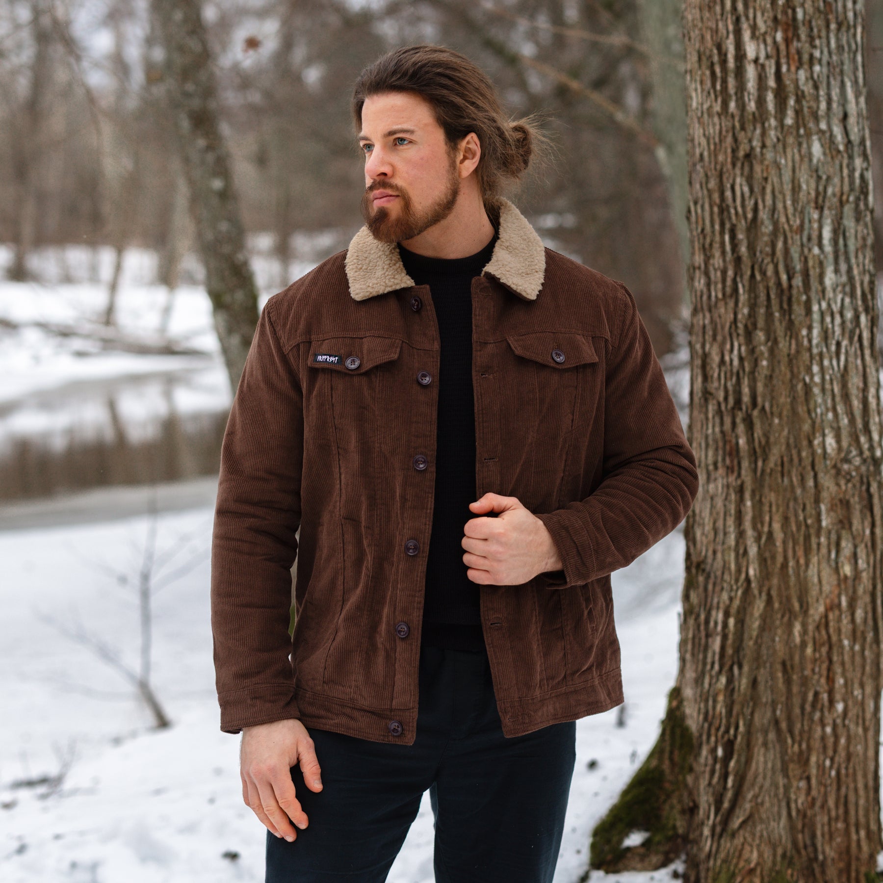 Classic trucker jacket with a warm faux shearling collar and teddy lining that delivers both style and warmth. Perfect for autumn and mild winter. A timeless favorite blending retro-outdoor vibes with modern everyday style. Comes with a Grimfrost tag on the chest pocket.