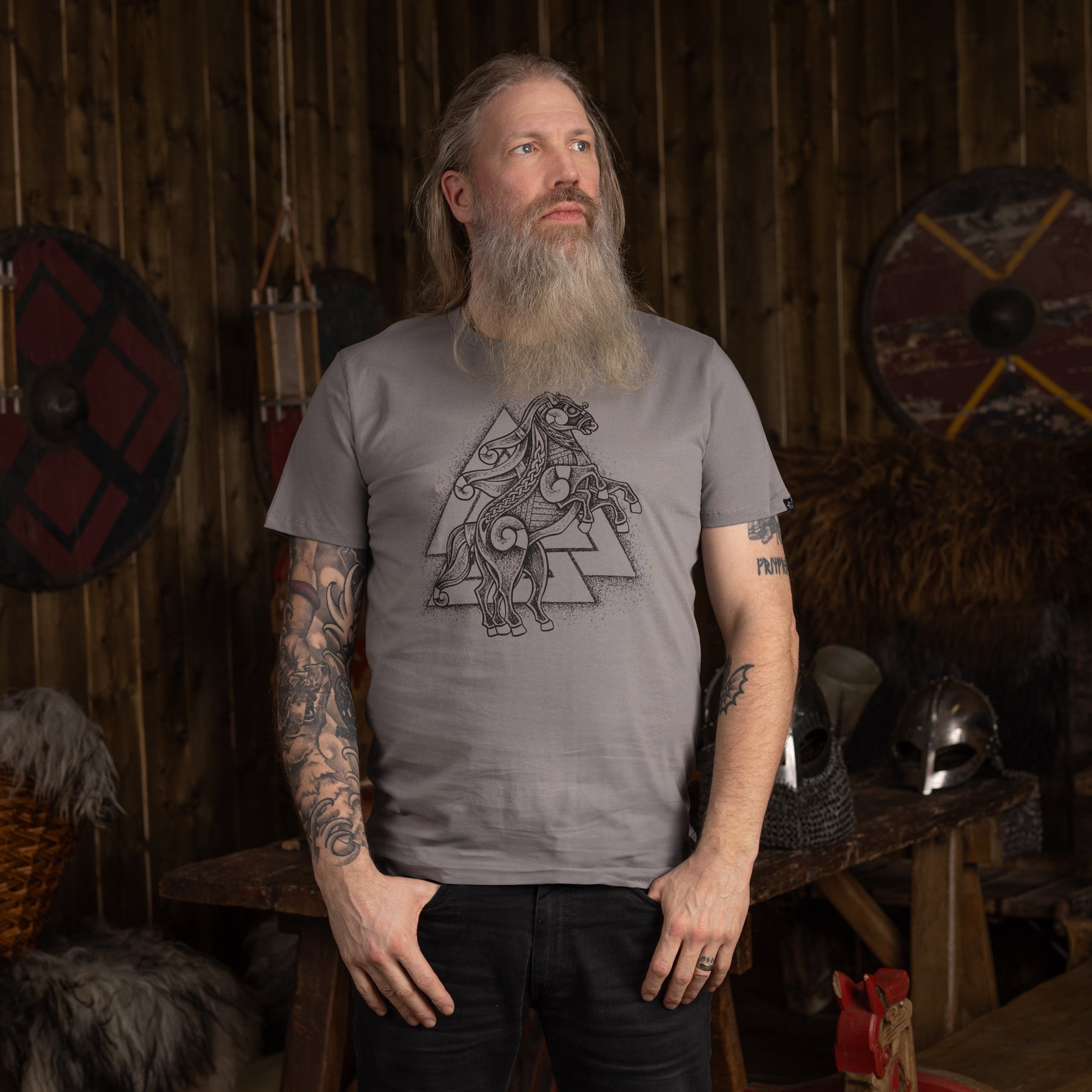 It is printed with Sleipnir, Odin's 8-legged steed, and a Valknut.