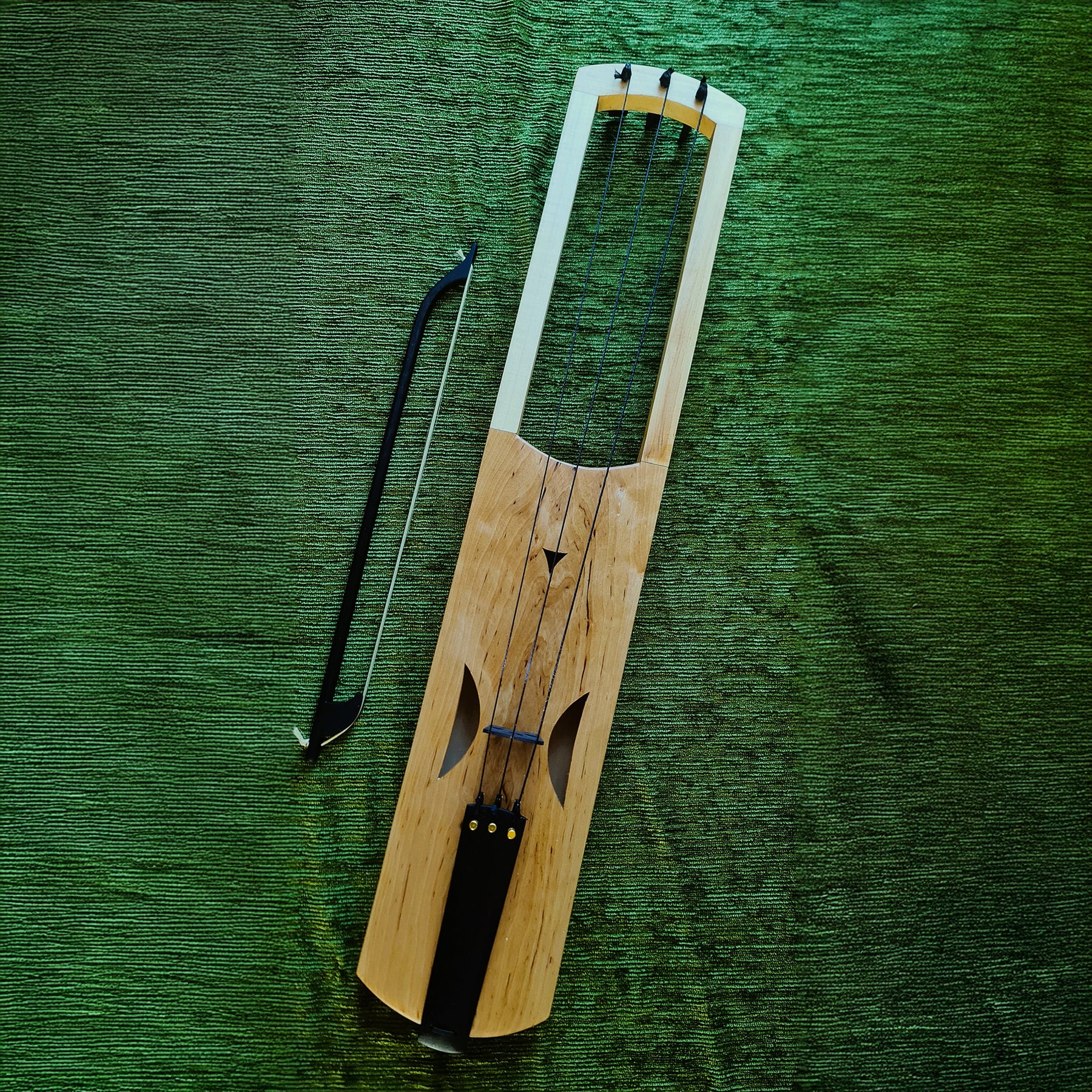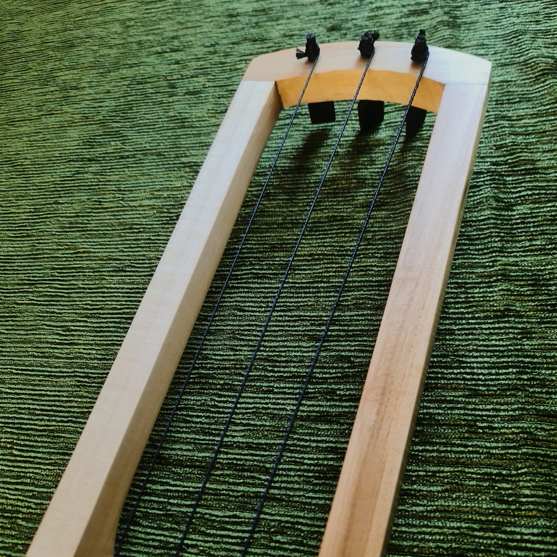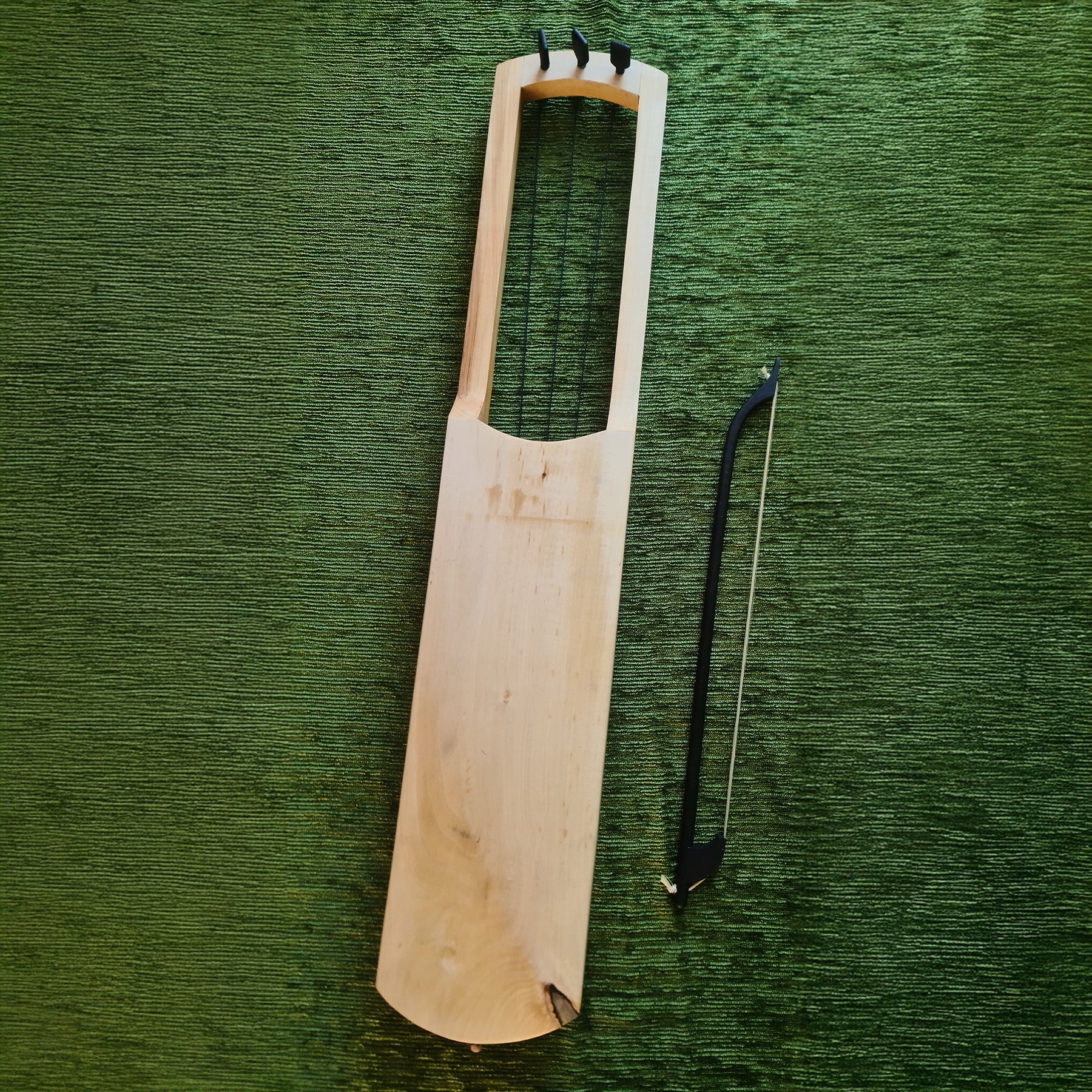 This three-string bass tagelharpa is designed to deliver a deep, powerful voice while honoring the raw character of traditional bowed lyres. The body is hand-carved from a single solid piece of linden wood, providing structural integrity and a balanced, responsive resonance.