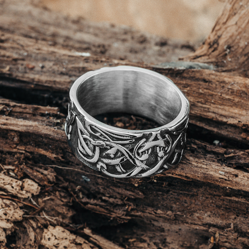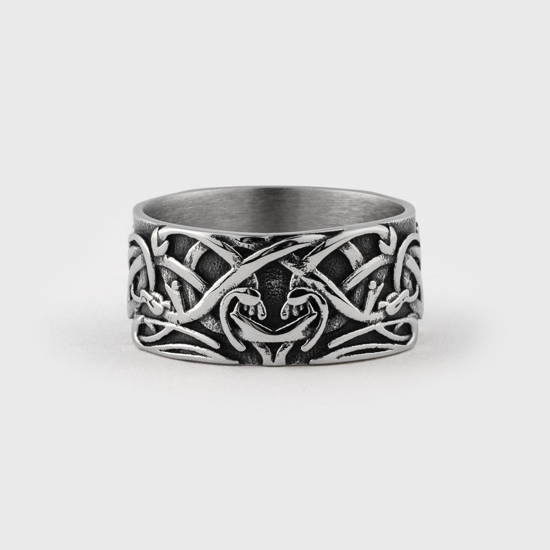 Ring crafted in solid Stainless Steel. It displays knotwork art that was popular throughout the Viking Age.